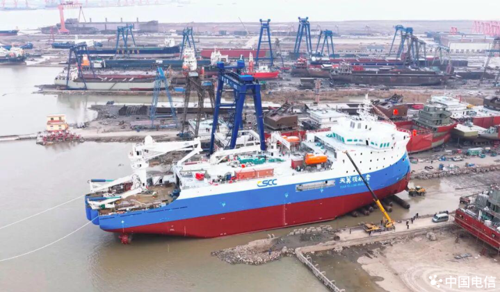 “天翼领航者”号的下水,不仅是一艘海缆船的诞生,更标志着中国海洋通信事业在科技创新与大型海缆施工船自主建造征程中迈出坚实一步,是国家海洋网络建设走向深远海的重要里程碑。
